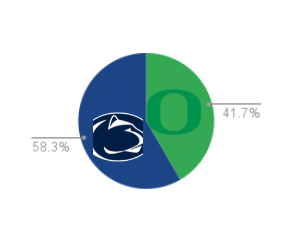 Now for the first of two huge games later in the day, #6 Oregon goes to #3 Penn State to experience the white-out. This is also a very even game as Penn State is only favored by -3.5, which I think is a little generous. I will be going with Oregon to upset the Nittany Lions because I think Penn State is one of the most overrated college football teams in the past 10 years. Chaminade football player Cameron Falb disagrees with me, saying blatantly, “It’s white out. Penn State.” Well said, I guess. Here’s who the student body thinks will prevail: